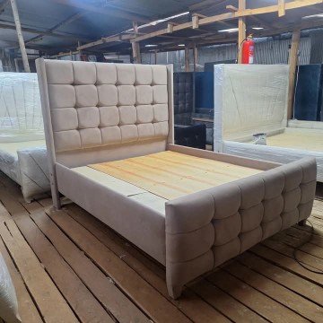 Constructed from durable blue gum hardwood, the frame provides long-lasting strength and stability. The bed is upholstered in high-quality fabric that is soft to the touch and customizable to any color, allowing it to blend seamlessly with different bedroom themes or stand out as a statement piece.